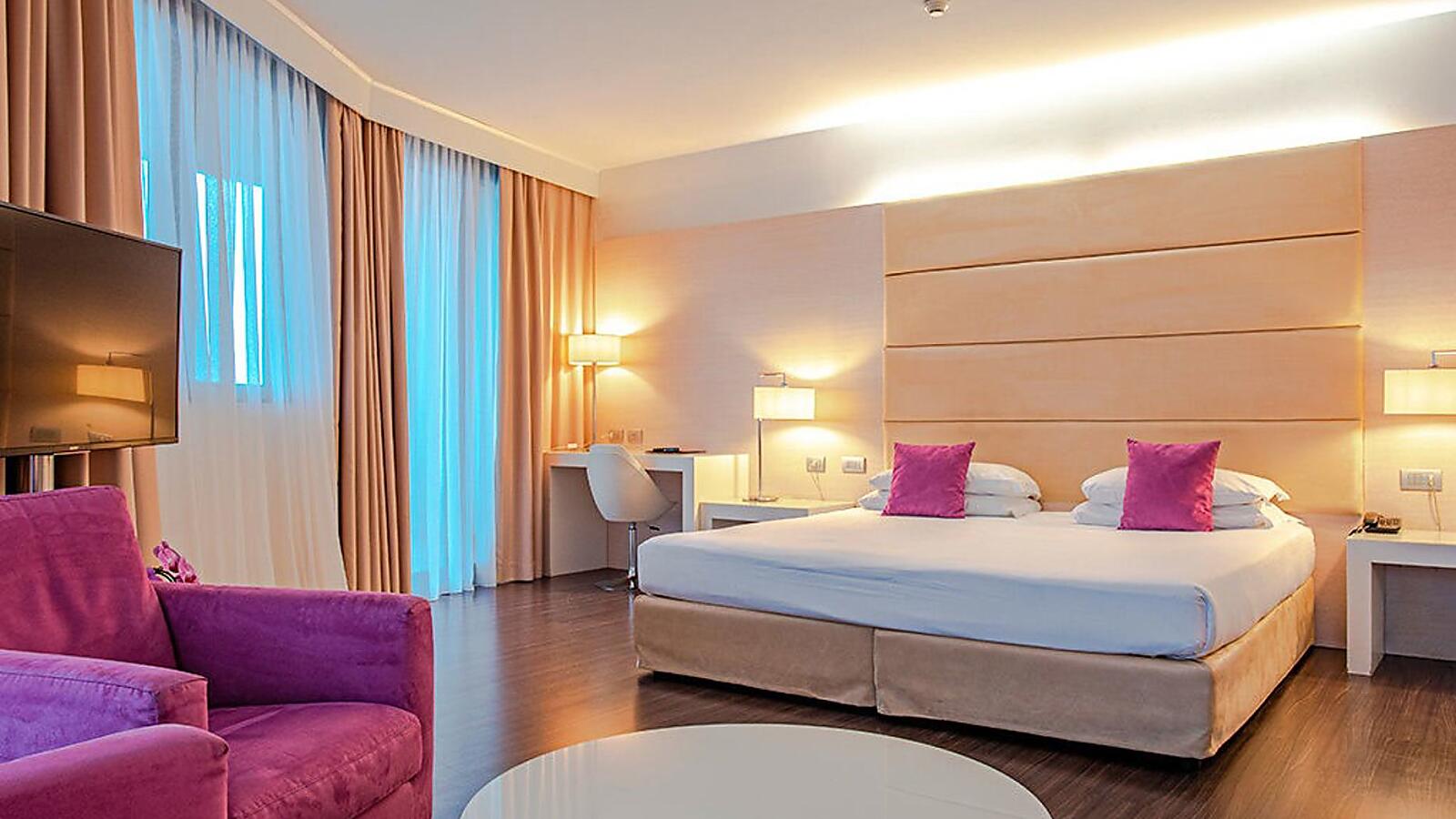 Guests can choose between a Junior Suite with direct sea view or a Panorama Junior Suite, which offers breathtaking views ranging from the tranquil waters of the lagoon to the snow-capped peaks of the Alps.